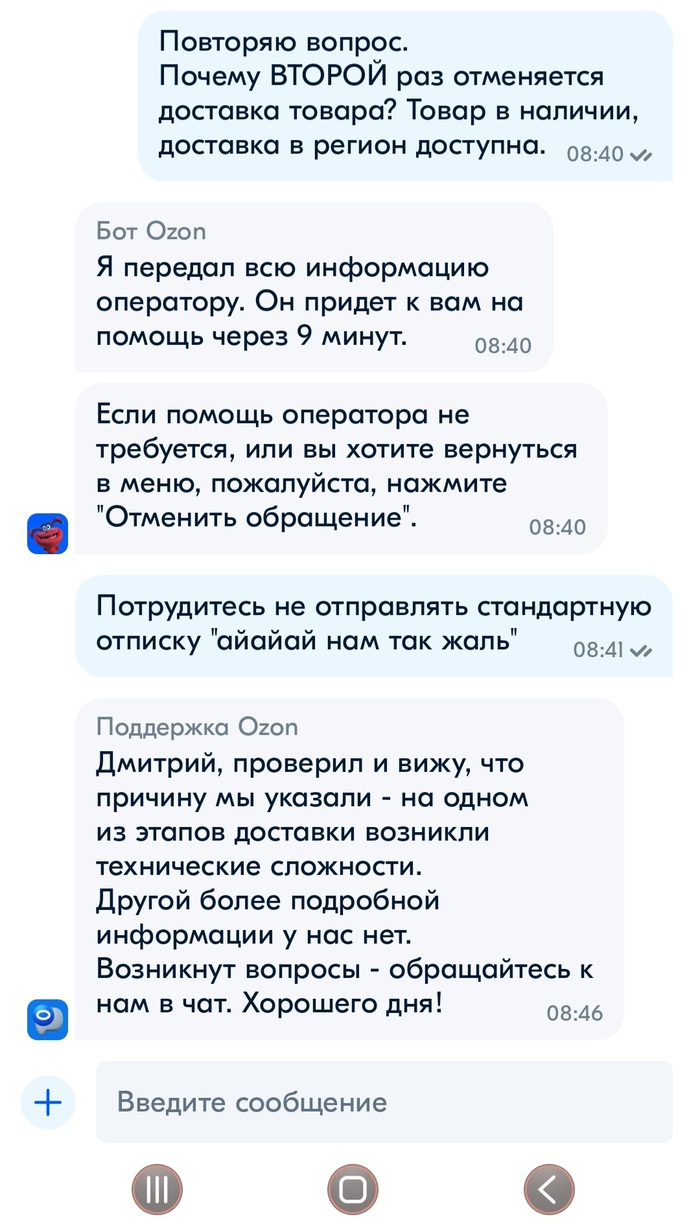 Через пару дней доставка отменена по причине "уай уай уай что-то случилось"