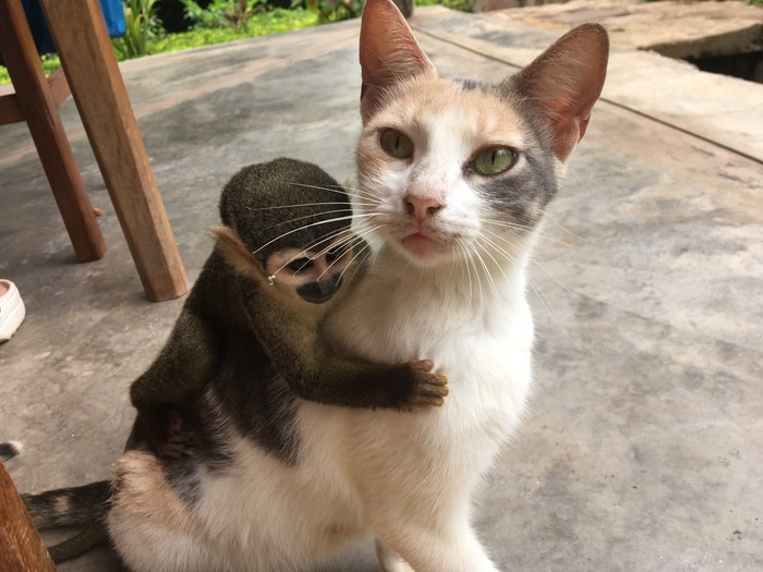 Кот стоически терпел все выкрутасы мелкого засранца, который дергал кота за усы, ел печеньки прямо на нем и вообще вел себя будто кот ему обязан до конца жизни.