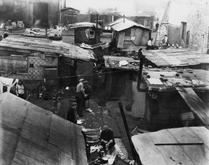 Огромное количество людей без жилья и без средств на аренду, стихийные трущобы во всех крупных городах. Абсолютно беспросветное будущее с невозможными ценами на недвижимость. В таких условиях ДОМ для многих реально был мечтой. Трущобам даже дали название - "Гувервилли".