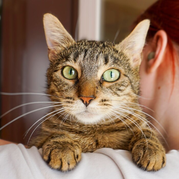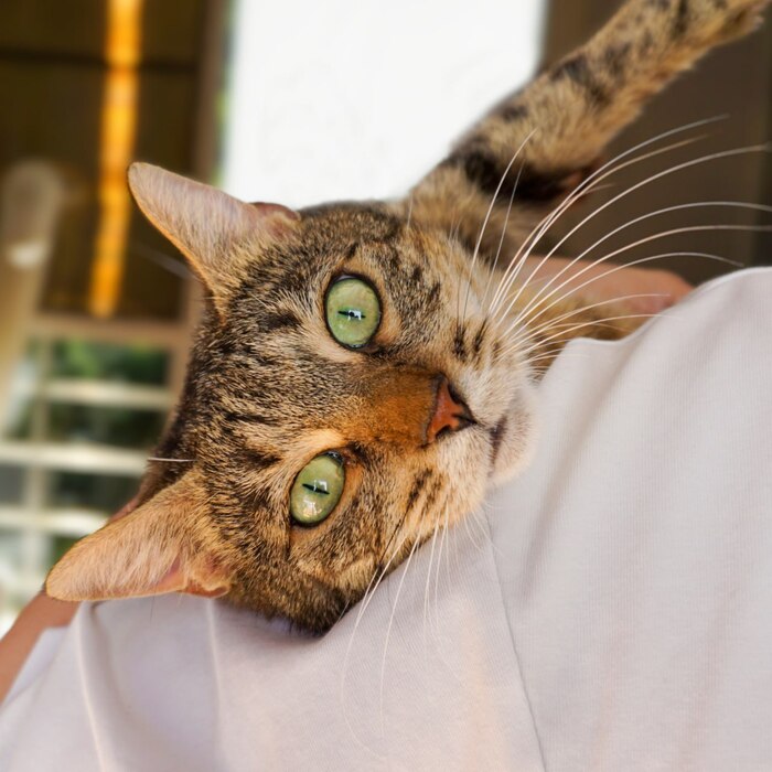 Он — "профессиональный" мурчатель. Его любимое занятие — устроиться на коленях, включить свой басовитый моторчик и заглядывать человеку в глаза с обожанием.