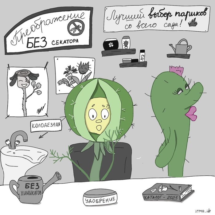Просто забавный комикс. На этот раз - пародия на сельские парикмахерские. Хотя вот у меня после их посещения чаще всего остаются положительные эмоции. Порой так и вовсе находятся такие самородки, после которых волосы отлично лежат ещё месяц или два, а времени и средств потрачено на процедуру - всего-ничего!