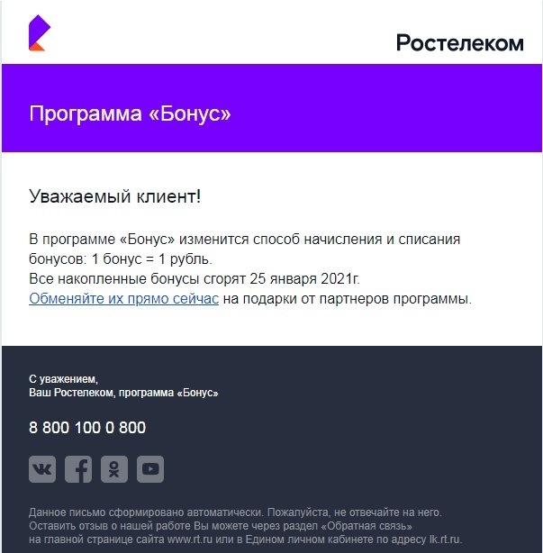Ростелеком - спасибо за бонусы! (Сарказм)