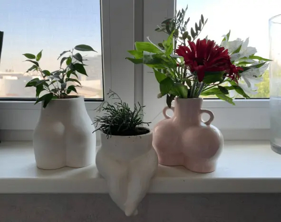 Также я люблю комнатные цветы и большая фанатка интересных кашпо. У меня есть коллекция ироничных оригинальных горшочков, которая напоминает, что жизнь прекрасна. Они расставлены у меня по всей квартире.