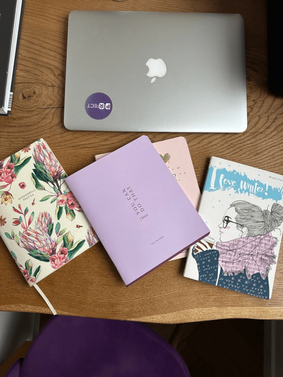 Я блокнотный маньяк. Я очень люблю блокноты. Иногда мне просто нравится записывать всё, что приходит в голову. Раньше я записывала всё на листах A4, но они потом повсюду. Это меня раздражало, поэтому я стала изменять листам с блокнотами.