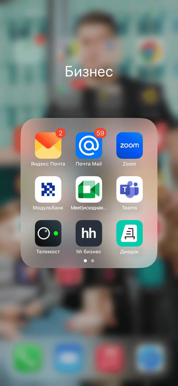 У меня есть отдельно папка, которая называется «Бизнес». Она содержит все необходимое для работы (по крайней мере те программы, у которых в AppStore есть приложения).