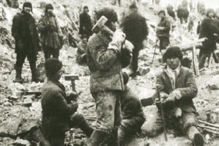 Осенью 1941 года приезжали к нам в лагерь Берия и Ворошилов. Они призывали работать больше и лучше, говорили, что враг находится у ворот Москвы, что великий Сталин любит только тех, кто работает добросовестно и сверхурочно.