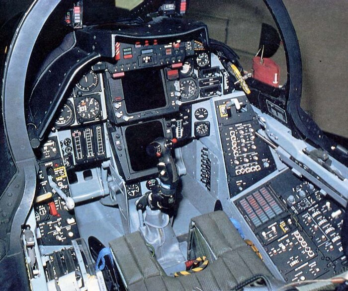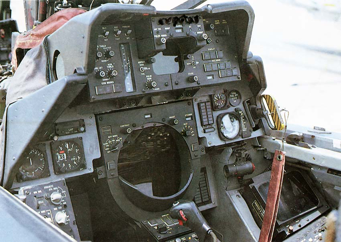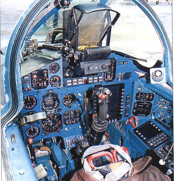 Вид на приборную доску в кабине летчика. ИЛС нет, прицеливание осуществляется через устаревший прицел АСП-17, который разработали еще для Су-17 в 1960-х.