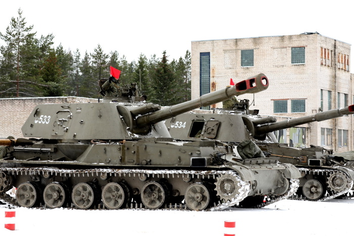 ПУ ЗРК «Круг», САУ 2С3 «Акация» и 2С5 «Гиацинт-С», самоходный миномет 2С4 «Тюльпан»
