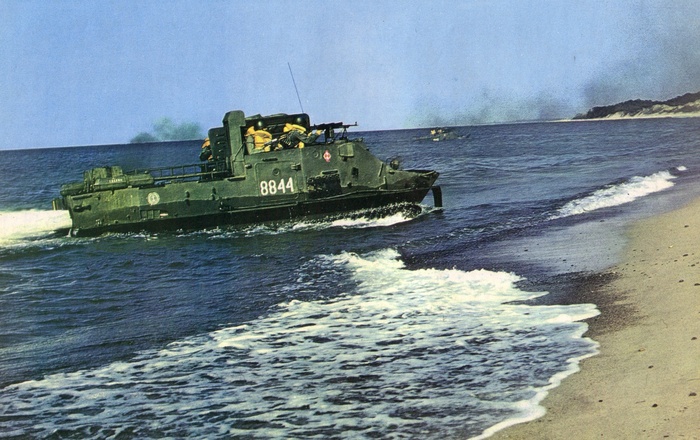 Под ПТ-76 в гвардейских танковых полках и механизированных дивизиях формировались роты плавающих танков, а БТР-50 поступали на вооружение мотострелковых подразделений тех же полков. В результате должен был получиться мощный «амфибийный кулак» для стремительных прорывов в начале масштабного конфликта.