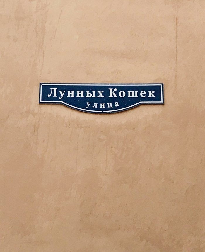 В далеком 2007 году название этой улицы написал от руки на стене неизвестный житель Петроградской стороны. Спустя время на стене появилась "официальная" табличка с названием "Улица Лунных Кошек".