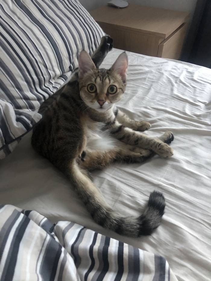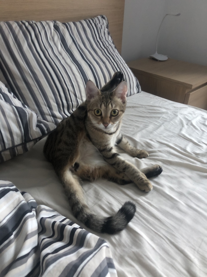 Это Шишка, ей 7 месяцев и она уже косо посматривает на моего парня и спит теперь только с ним)