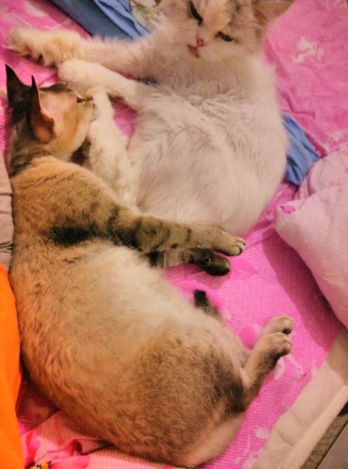 При очередной стрижке, обмолвилась мастеру что хочу коту кошку подогнать, уличную, чтобы компания была. Филька ласковый, заботливый. И мастер сказала что у нее на передержке молоденький сфинкс, девуля.