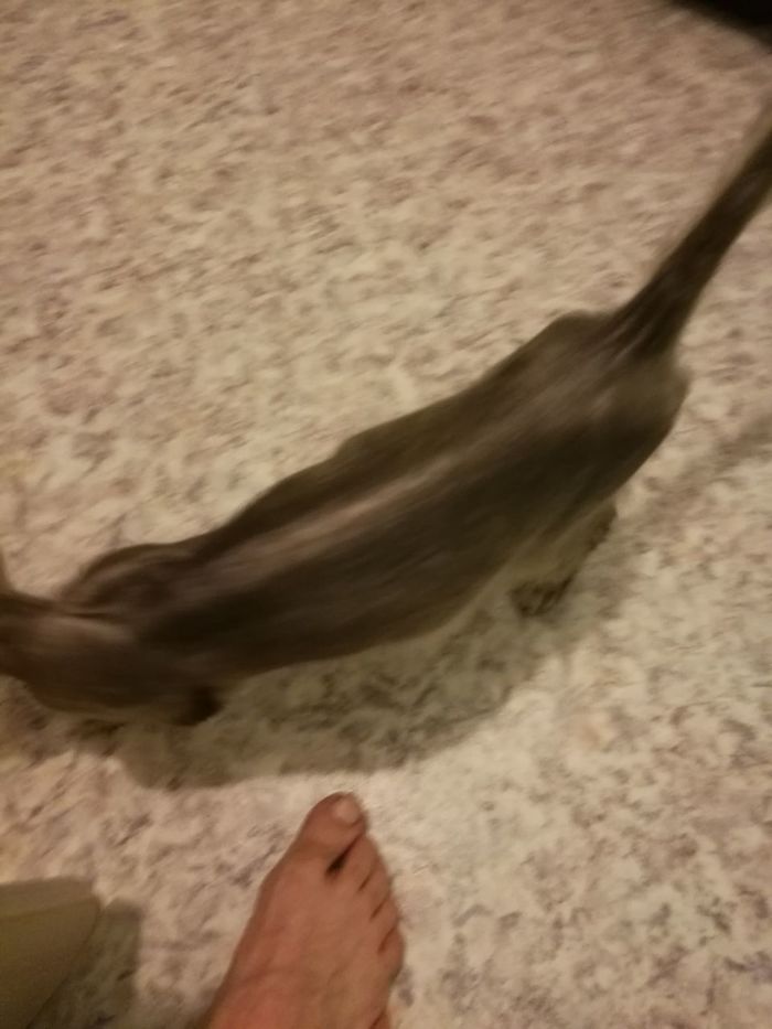 Ее привезли на усыпление. Я когда фото увидела, сразу поняла что это моя девочка. Месяц я ждала чтобы ее забрать, так как Филька любит пуходерку, трется об нее и умудрился наколоть щеку, лечили.