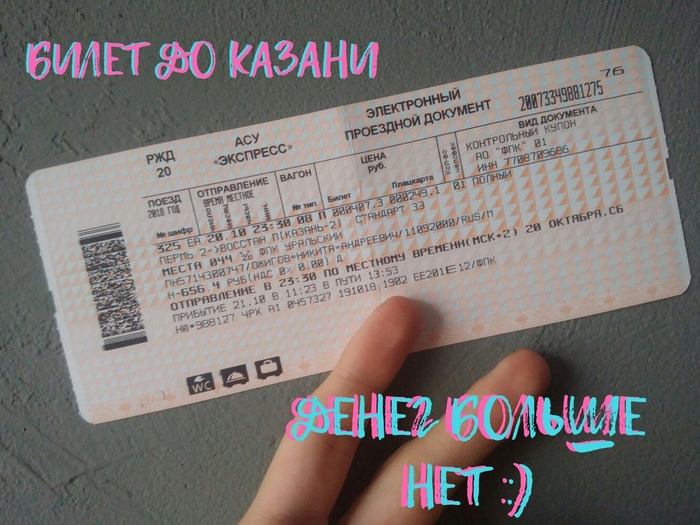 В моих планах: добраться до Калининграда, вернуться в Пермь, и двинуть во Владивосток. Вчера я купил билет на поезд до Казани, потратив последние деньги. Отправление уже сегодня вечером, пожелайте мне удачи!