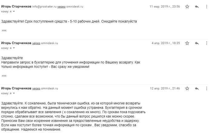 Заказ приехал, даже на время забыл про свои деньги. Вспомнив решил напомнить им написав на их почту. Но они продолжали кормить завтраками.