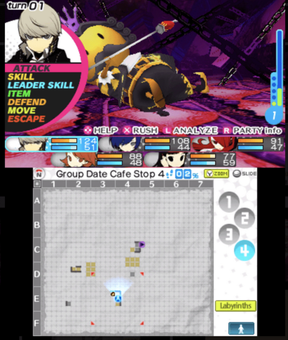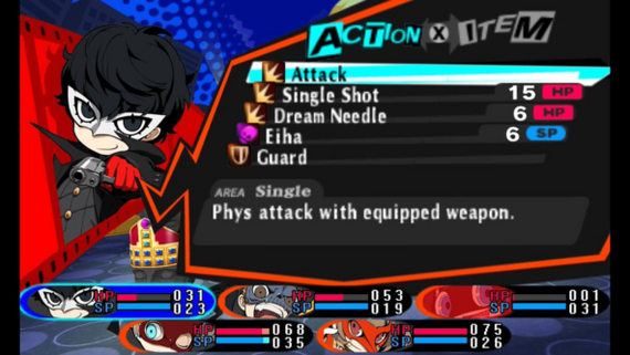 Справедливости ради, боевая система в вакууме хороша. Есть обычная атака, несколько вариантов дополнительных, персонажи управляются по-разному, и все фишки P5 (персоны, огнестрел, слабые и сильные элементы для каждого персонажа) перенесены. Проблема для меня, похоже, только в использовании этой системы в местных подземельях.