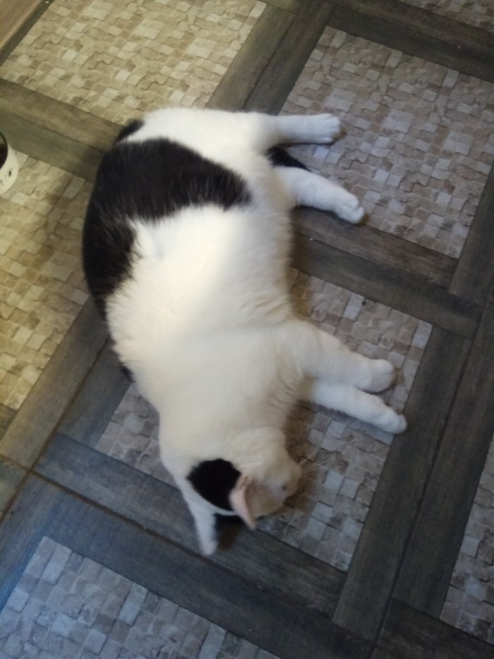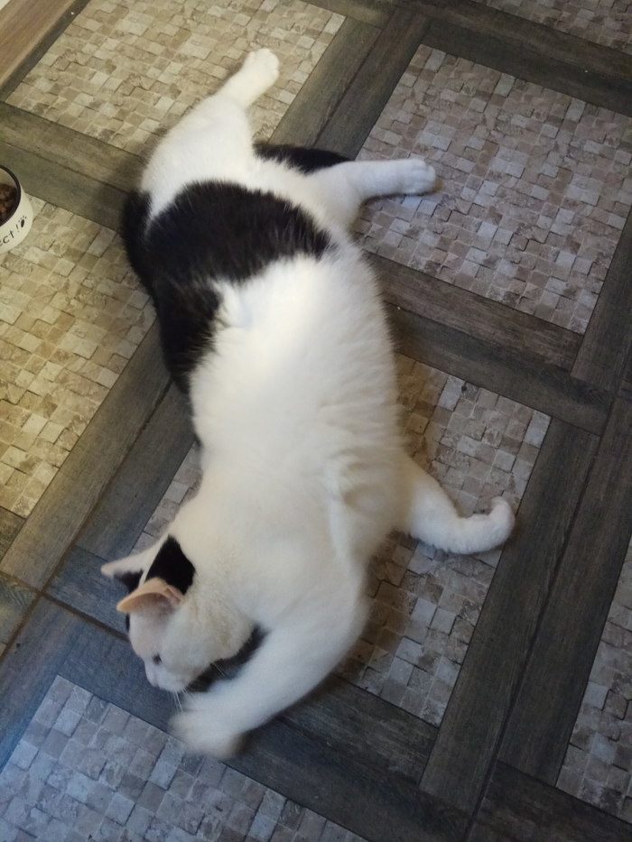 Знакомьтесь. Кот Томас. Любит покушать и поспать. А так же любит полазать и побегать несмотря на свой вес в 7 кг. Корень валерьяны не даёт ему покоя. У соседей выкапывает и весь черный в земле приходит и катается. Это лайт версия от 2 корешков от полного корня. Видос ниасилила прикрепить ссылка в ВК. Если модератор поможет- лучи добра ему/ей.