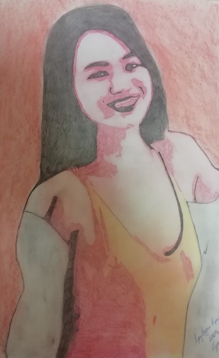 Портреты Оли на холсте и бумаге