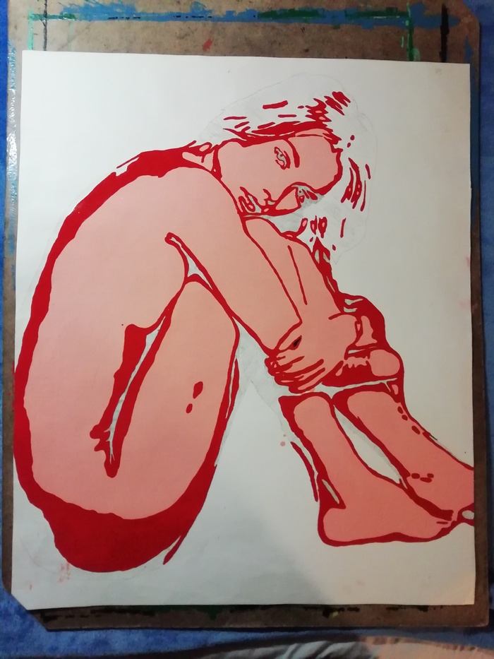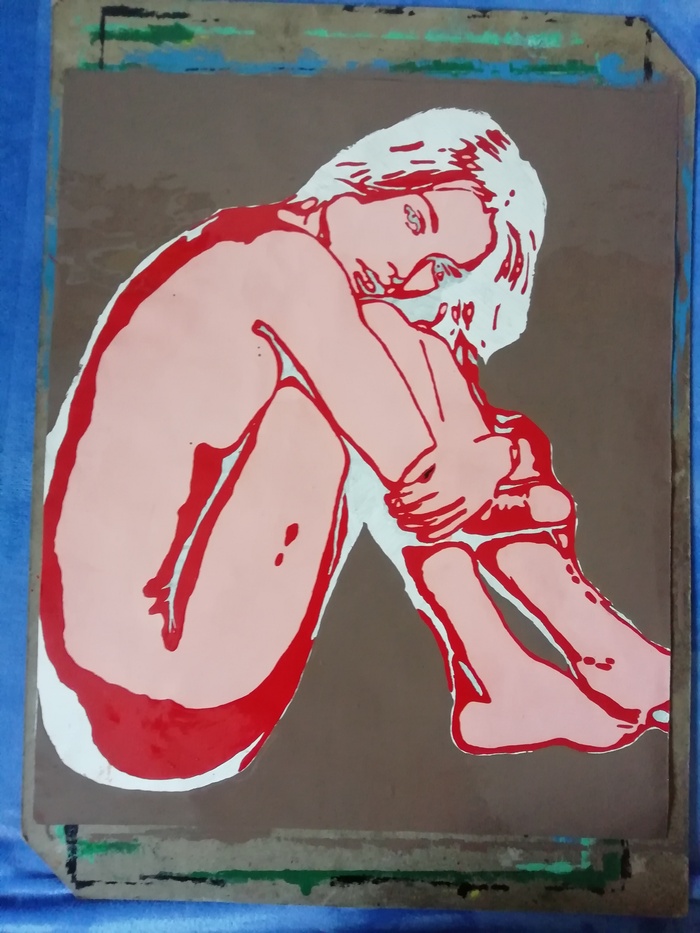 Работа выполнена на навигационной карте подхода в порт города Сет красками по металлу, которыми мы красили трюма. Она была украшением моей каюты, затем квартиры, после учувствовала в моей первой персональной выставке "Взгляд с полотна", и вот сегодня она снова представлена на коллективной выставке "Муза" в галерее Molbert.