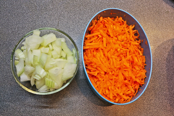 ● Лук репчатый - 2 шт. (луковица поменьше - в тесто, луковица побольше - на начинку)