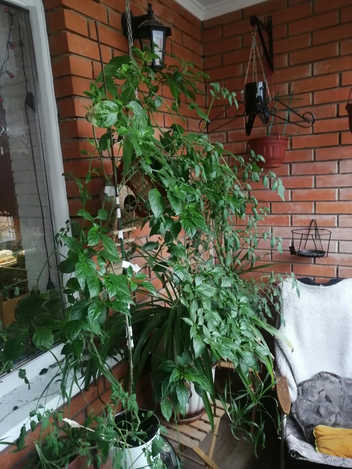 Во всю идёт осень. На балконе +15 в среднем (ночью), на улице 0-+2 (ночью). Когда заносить уже перцы? Золотничок по 4 разу цветёт и вяжет (ему походу вообще пофигу на погоду), а 7 pot bbg Red растёт все выше и выше. Всё остальные перцы переехали уже на зимовку, остались ток эти бравые ребята. Но я чёт очкую переносить их в тепло. Боюсь, что опадут и станут не красивыми (как со скотч бонет вышло, из полного куста, остались палки, и из них микролисточки лезут)