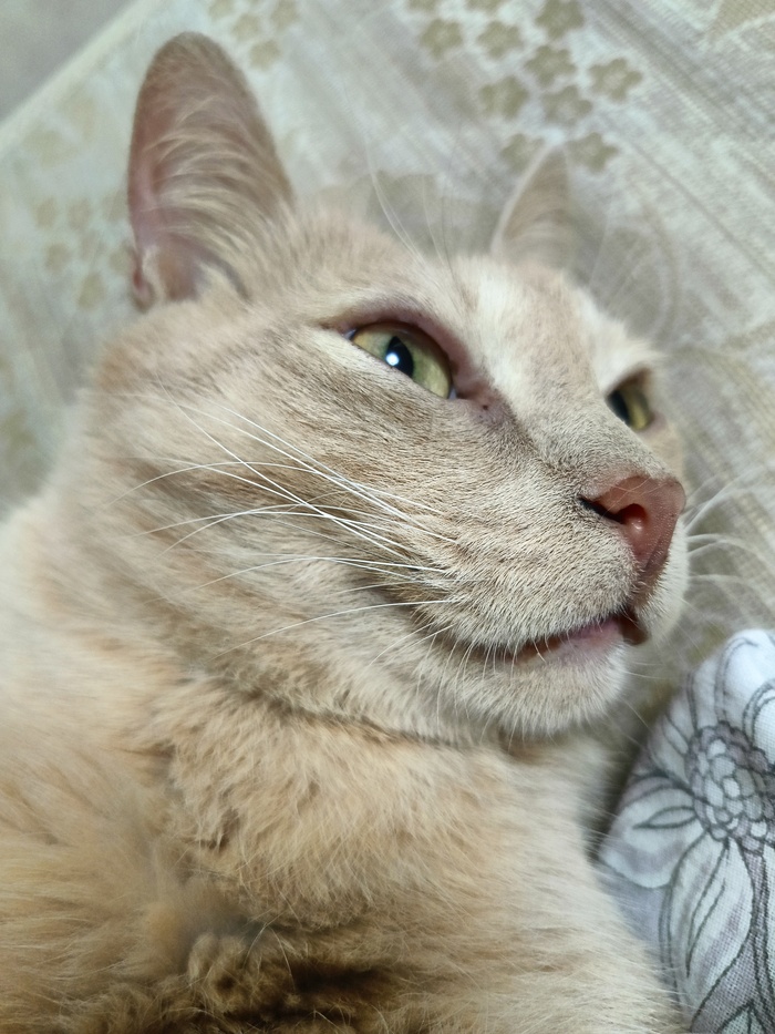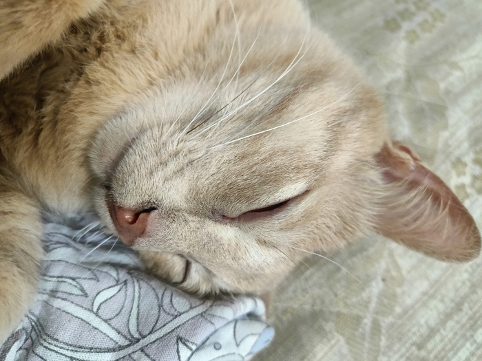 Взяли мы с улицы кошку, но она оказалась в положении, жена решила утопить всех котят. Меня дома не было, она сказала один рыжий, тут же звоню говорю рыжего не трогать хозяина найду, на рыболовном форуме нашел хозяина договорился, рыжа остался жив, но судьба решила иначе. Котик оказался сильно болен, не мог открыть глаза, нормальных ветеринаров у нас тяжело искать, в итоге начали мазать глазки мазью для людей, котик начал приходить в себя. Ну а после этого я не смог его отдать, в итоге рыжа теперь с нами.