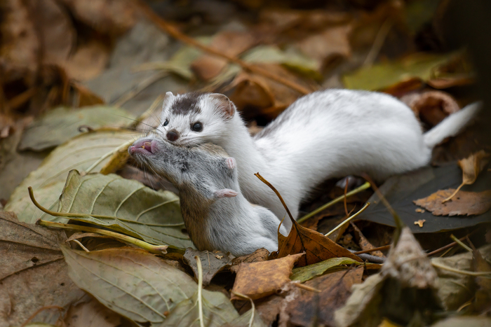 Фото с прошлого года, в ноябре удачно встретил ласку. Не обращала на меня внимания, получилось пофотать ) Почти полностью полиняла перед зимой.