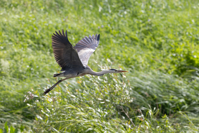 Серая цапля, ее пруд зарастает травой, в прошлой подборке там была вода вокруг