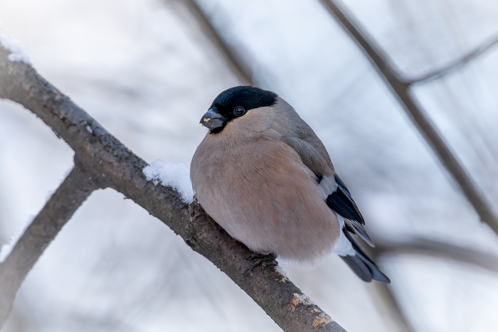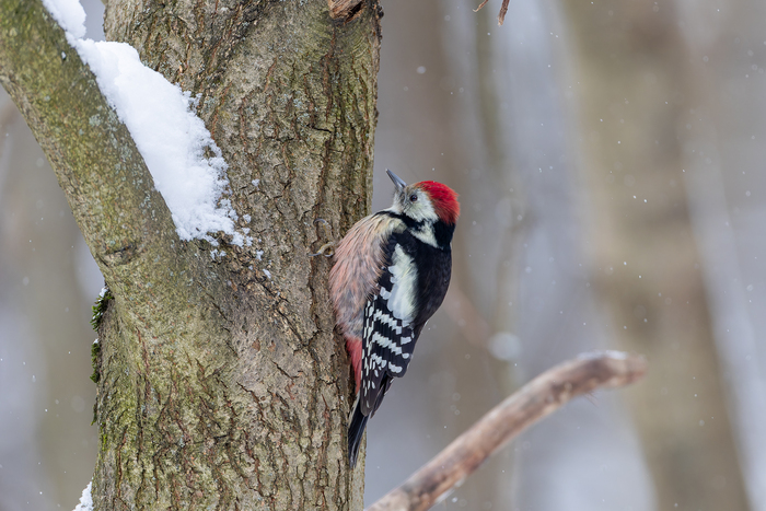 Выходные выдались снежные, все завалило. Смог выследить Желну. Кажется их три, у одной большая шапка, у второй поменьше, и вот еще одна почти без шапочки.