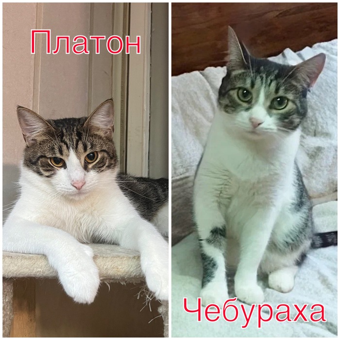 Конечно, подвальная жизнь не прошла бесследно, они не бегут в руки к каждому, могут показаться немного робкими и боязливыми, когда они привыкают к человеку, то начинают показывать себя настоящих, и вот это самое любопытное и интересное зрелище, потому что эти два весельчака те еще котята! Они любят поиграть, повозиться друг с другом, поспать рядышком колачиком. Они словно еще не выросли. Чебураха более активный и сам тянется к людям, хотя не любит излишних телячьих нежностей. Платон мужчина суровый и непоколебимый, хотя больше таким кажется, чем он есть на самом деле. Чебураха все же более проворный и активный, а Платон больше про полежать и поесть, эдакий увалень с брутальным видом. Сейчас эта парочка живет на передержке в Москве, они уже многих котиков проводили домой в новую жизнь, а сами все сидят.