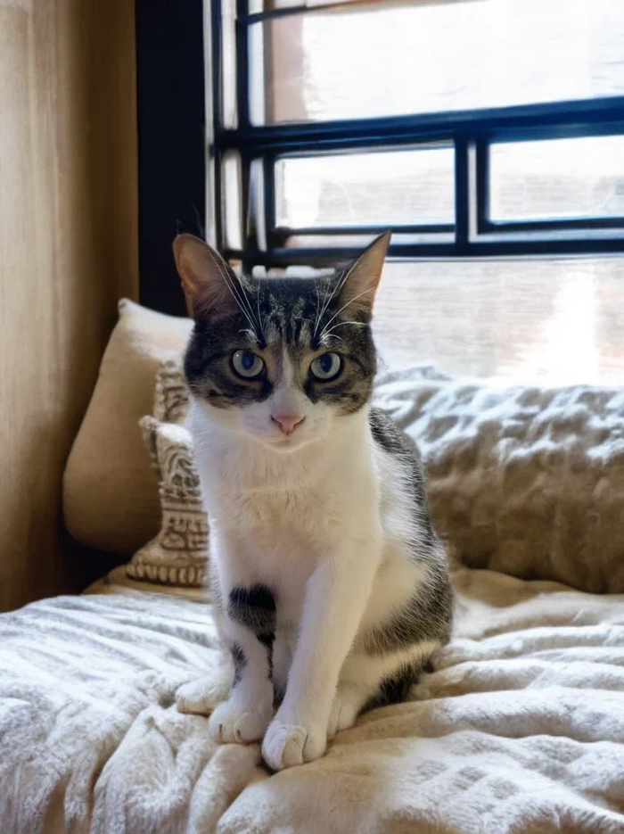 Это чудо-кошечка! И я бы не подумала ее пристраивать, если бы не моя копилочка котов дома и противный кот Рамзан, который периодически до нее докапывается и обижает. Поэтому она спит в коридоре, предпочитает охранять ботинки.