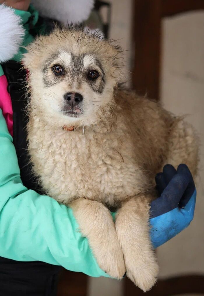 Ситуация очень критическая! Четырех малышей, которых спасли с трассы из под колес машин удалось временно разместить в теплице у одной женщины. Им все оборудовали там так, чтобы щенки не замерзли и были сыты. Вчера я узнала, что женщина, которая дала добро поселить у себя щенков, отдала малышку Айну одной соседке, которая днями и ночами безбожно пьет. Вдобавок ко всему у этой женщины уже есть своя собака, которая прокусила ей руку и ногу. Собака у нее агрессивная, а Айну она держит в бане, чтобы та не загрызла малышку. Мы будем всячески пытаться забрать у нее Айну. Не для этого мы спасали такое чудо: