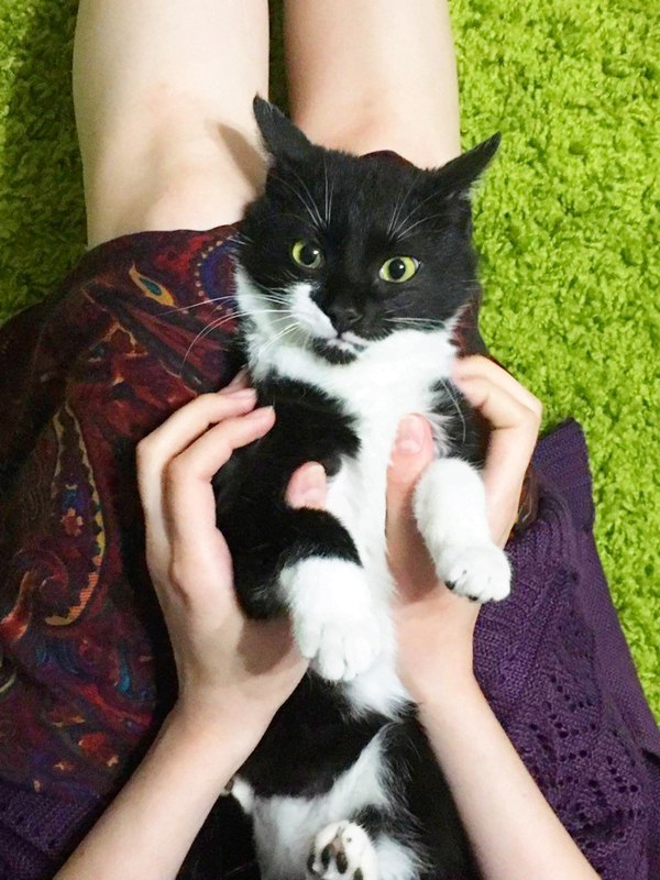 Отдаем в хорошие (!) руки кошечку Мусю. Подобрали ее месяц назад, кошка сразу без наших объяснений нашла лоток и с тех пор исправно туда ходит.