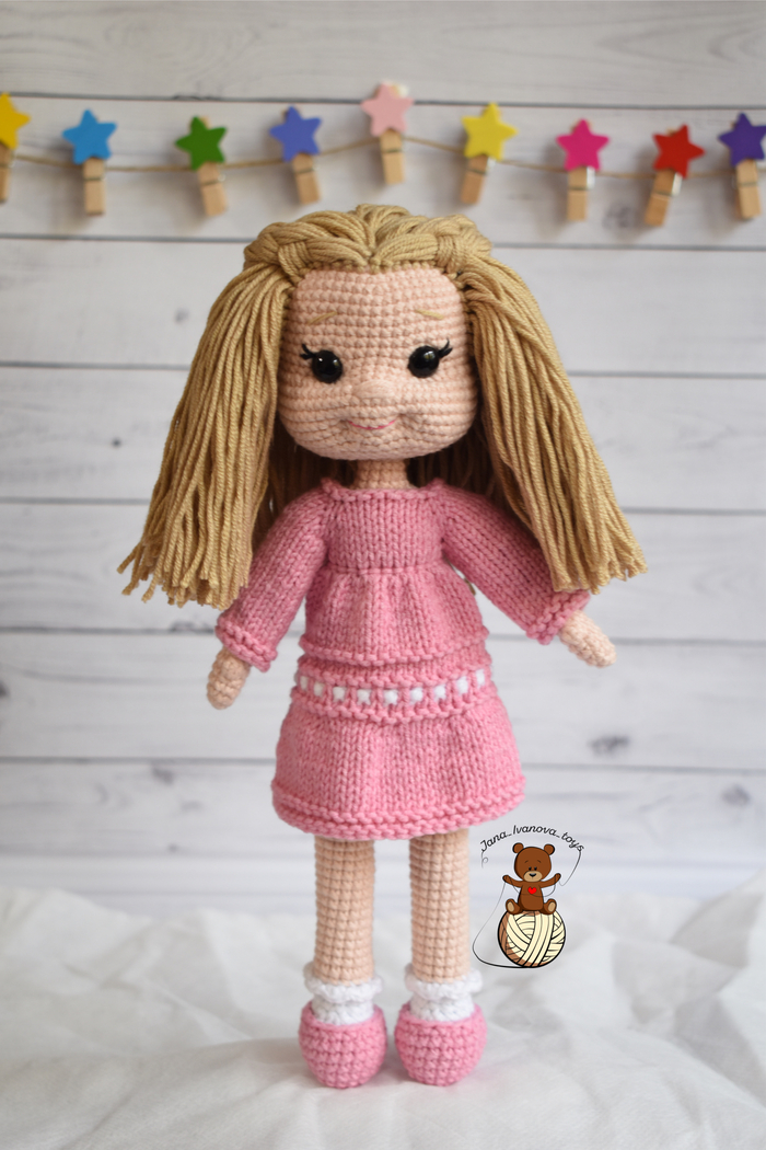 Куколка связана повторно, ранее уже выкладывала похожую куклу. А вот одежду для неё решила связать другую, чтобы не совсем похожи были.)