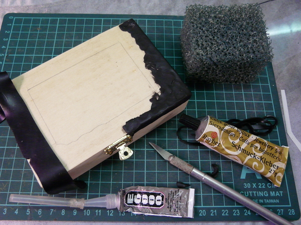 Для дополнительной механической обработки кожи может понадобиться шило, тонкий резец. Мы обязательно обрабатываем края. На фото спец. резец для краев и деревяшка с пазами для затирки. Можно сделать так называемое «поджигание» кожи для закрытия пор - то есть интенсивную затирку, к огню это «поджигание» отношения не имеет. В этом случае понадобится еще какой-нибудь инструмент, хотя бы деревянная ложка. Мы браслеты не «поджигаем», только края обрабатываем: подрезаем и затираем с каким-нибудь спец. составом для обработки краев. Для браслетов абсолютно не принципиально, какой именно состав брать. Любой.