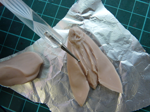 Шаг 3. Берем маринованного осетра и чего-нибудь с ним делаем. Что именно делать зависит от того, какой окончательный вид вы хотите придать готовому изделию. Плетем разрезы, скручиваем всякие хвостики, расширяем разрезы вставляя распорки. Пропитанная краской кожа эластична, легко поддается подобным манипуляциям.
