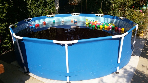 Рядом с уголком из кирпичей забетонировали площадку под бассейн)). Ставим к приезду детей, но там и самим поплескаться кайфово)))