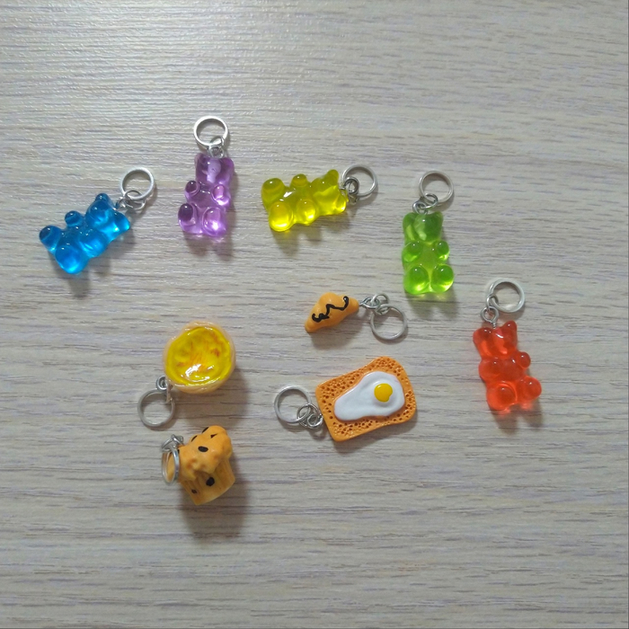 В общем, насмотрелась я в кхм-стаграме на разные красивущие маркеры петель - и побежала на алиэкспресс. Заказала подвески (на али называются "подвески для рукоделия"), цельные кольца, соединительные кольца - и вуаля, через три недели у меня были маркеры, которые каждый раз теперь радуют взор.