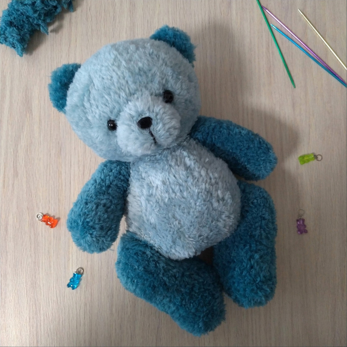 (правда пудро-розовой пряжи у меня на тот момент уже не было, буквально за пару месяцев до этого пустила на медведя; подруга сама выбрала коричневую из наличия).