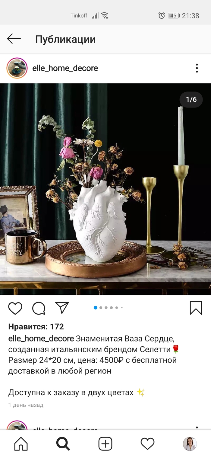 Накануне листаю инст и натыкаюсь на магазин всяких дизайнерских штук для дома. Все очень красиво отфоткано, предметы кажутся эксклюзивными. Цены кусачие. Продавец под каждым постом пишет про какие-то итальянские марки, дизайнеров с именами в пять слов, ручную работа из какой-то там пиздатой экологически чистой глины и тд. Все это потихоньку затягивает.