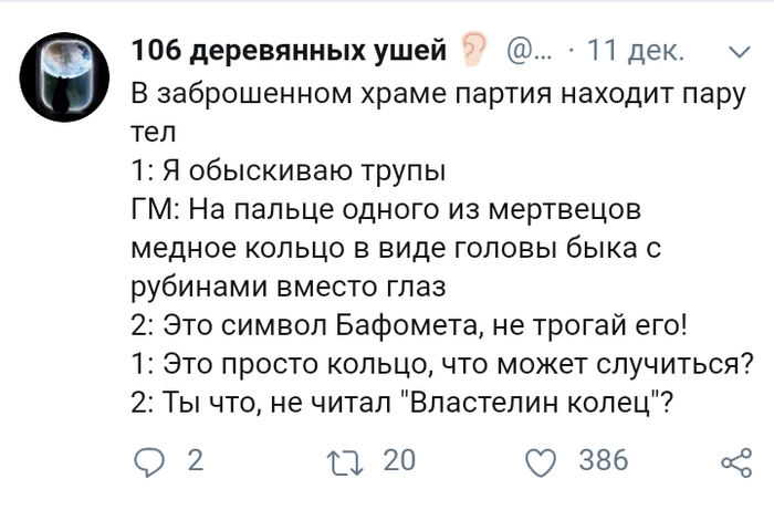 После боя, все поздравляют друг друга, отмечают вовремя примененную способность клерика, на что тот отвечает: "неисповедимы пути в могилу".
