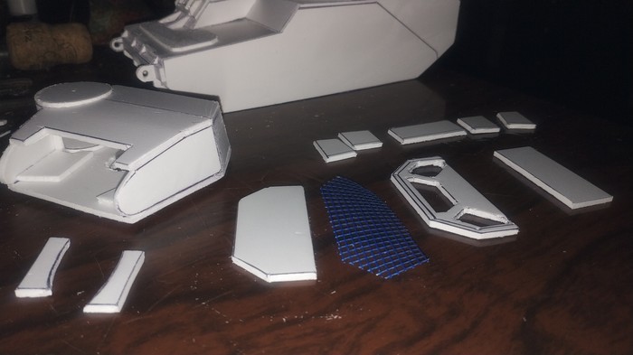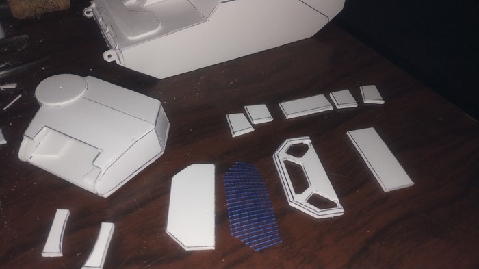 Кстати синии части пластика с шипами- части одноразовой пломбы для тары, а белые части правого наплечника- горловина тетрапака из под сока.Проводки черного цвета- старые порванные наушники капельки.