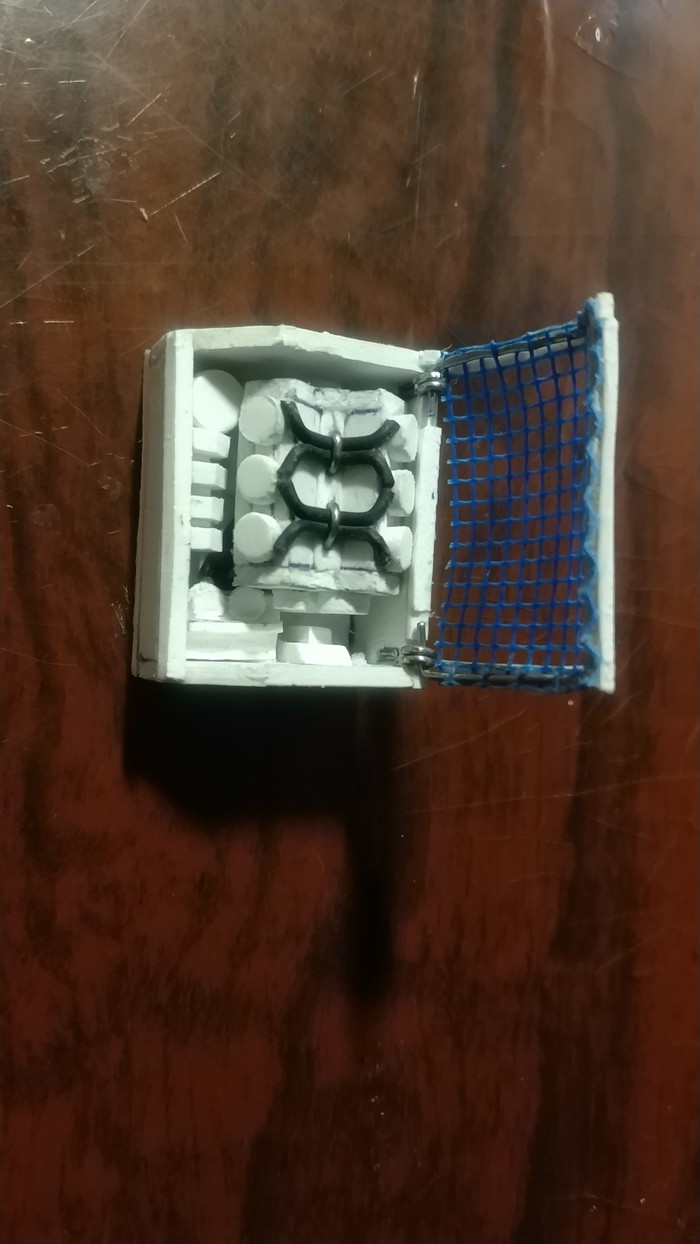 Подумав что просто коробка на спине изображающая мто- скучно, начинаем клеить двухсантиметровую шкатулку с сетчатой крышкой и имитацией нутрянки: