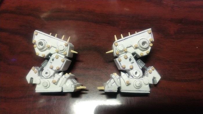 Где то на этом этапе, до меня доходит что это уже не фига не пара вечеров,и не уровень жужжащей заводной шагалки шутки ради, поэтому приходится клеить серьёзные нижние лапы, нещадно копируя (по мере возможностей) оригинальную штамповку: