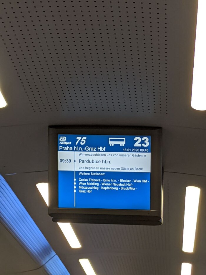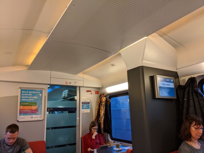 Комплектация немного другая у чешского поезда. В нём один вагон первого класса - головной, когда в ÖBB их два. Кстати в обоих есть и класс выше: бизнес. Но оба перевозчика используют локомотиву Taurus в раскраске RailJet.