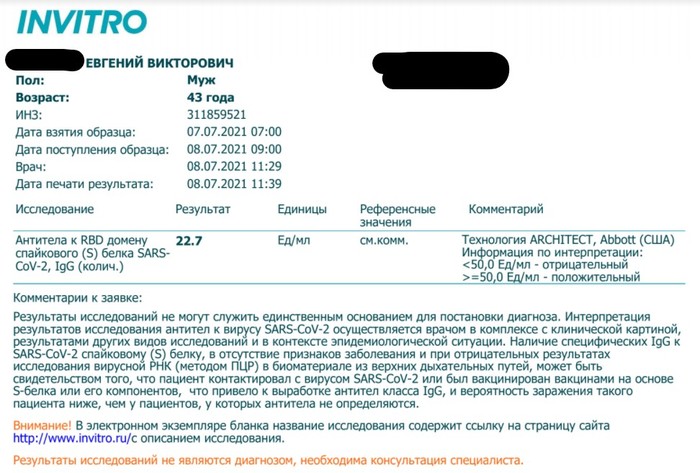 Как только это стало доступным для широких масс населения, сразу же привился Спутником. Второй укол получил 05.03.2021. На днях решил проверить надежность появившегося иммунитета, сдал анализы (в двух разных клиниках и по разным методикам) и увидел то что снизу на фотках. Не болел, и болеть не хочется (видел много поучительных примеров). На ревакцинацию не записывают - говорят не прошло пол года еще.