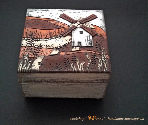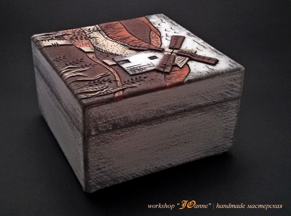Сразу скажу, что это не моя авторская идея, как-то увидела подобную шкатулку у одной замечательной мастерицы по полимерной глине и поняла, что нужно сделать подобное непременно, так как мама просто пищит от восторга, когда видит всякие разные штуки с изображением мельницы. А сказано - сделано.