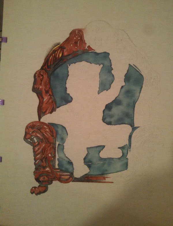 Привет, пикабушники:) Прекрасный субботний весенний день, погода так и шепчет, так и зовет погулять, но не меня:) Только вчера после обеда начала расписывать футболку,не ожидала, что сегодня сделаю большую половину. Делаю в подарок очень хорошему человеку. Предоставляю на ваш суд:)