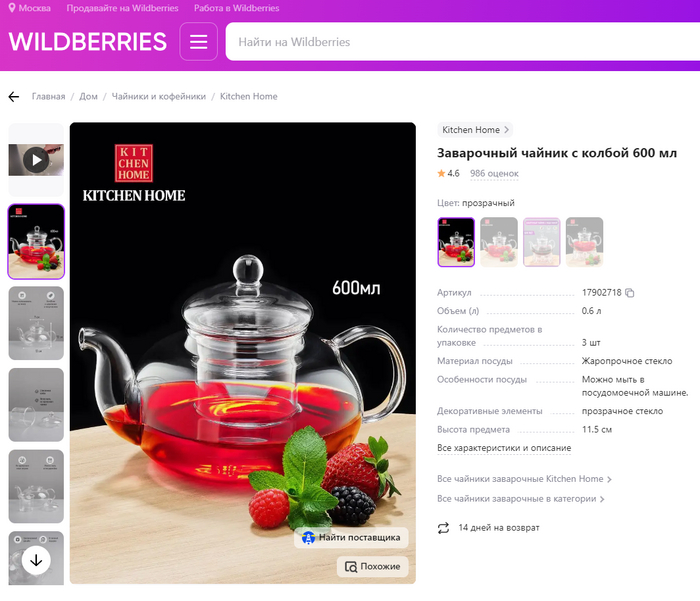 По самому высокочастотному запросу "Чайник заварочный" (275 000 запросов в месяц) товар отсутствует в выдаче в Москве и Санкт-Петербурге в течение последних 7 дней. На эти регионы обычно приходятся больше всего продаж. Следовательно поставщик упускает свою прибыль экономя на логистике. Напишите в комментариях что вы думаете по этому поводу?