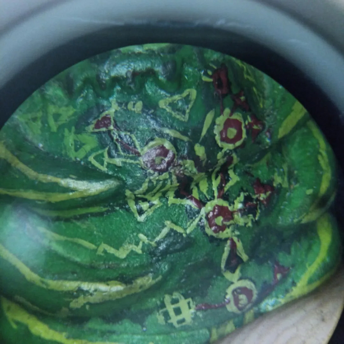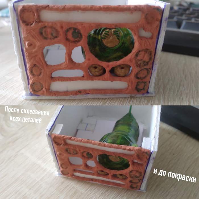 Поэтому решил всё основное вырезать и вылепить углубления, а совсем мелкие линии и неровности доработать после высыхания. После высыхания глина становится весьма твёрдой и прочной, благо из-за чего легко обрабатывается, а если добавить немного воды при этом, то поверхность немного размокает что позволяет обработать её более мягко.